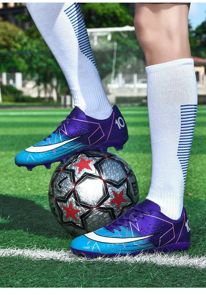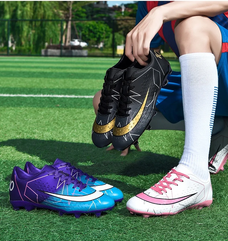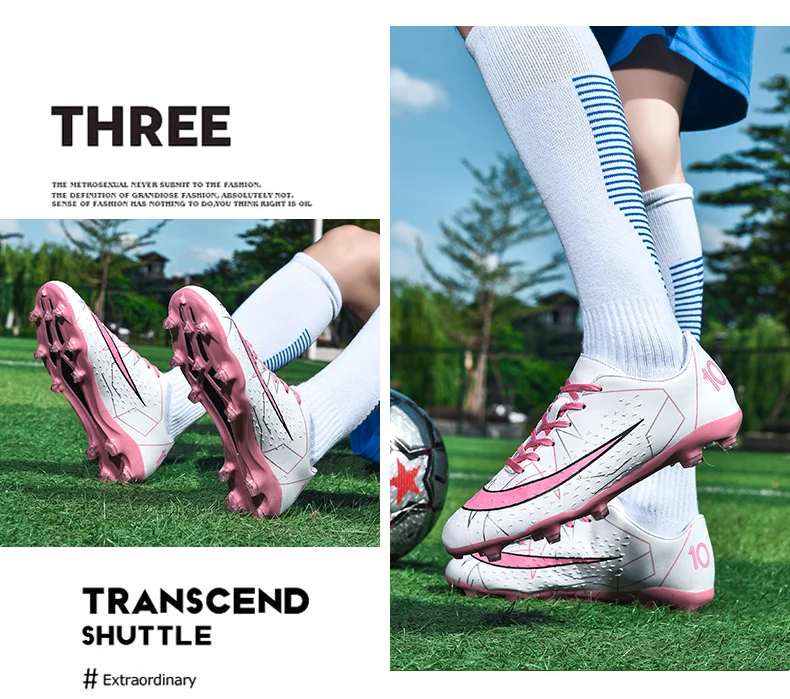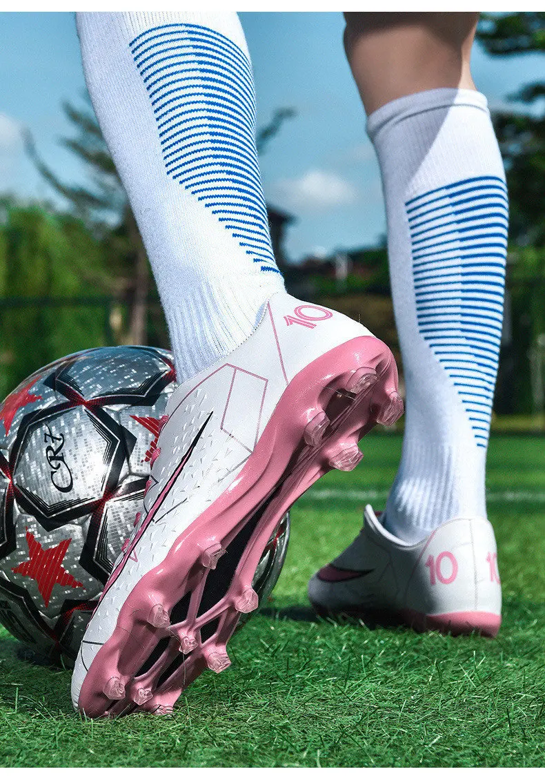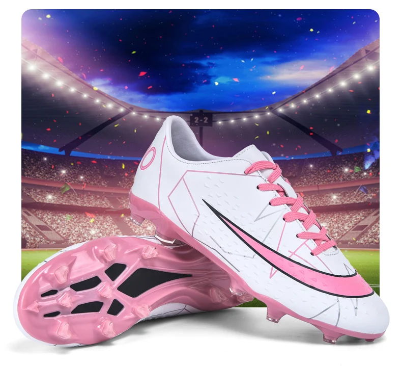 Fashion White Pink Football Sports Shoes Men Women Cheap Long Spikes Soccer Cleats Men Professional Futsal Shoes Zapatos Futbol