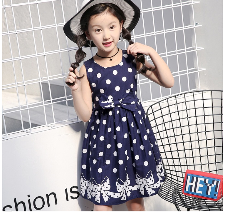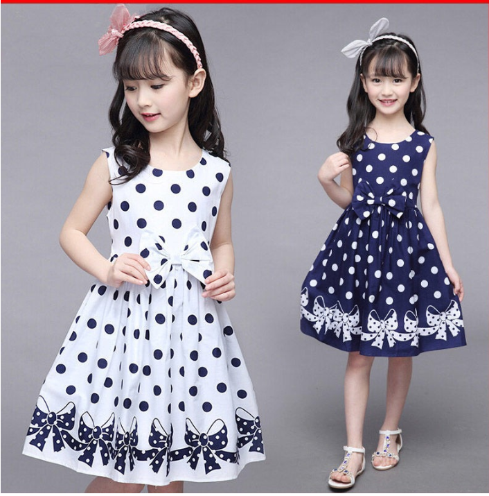 The standout feature of this dress is its playful polka dot design, accented with a stylish bow that adds a touch of elegance and fun. Available in two classic colors—Blue and White—this dress will make your little girl the center of attention at any gathering.
